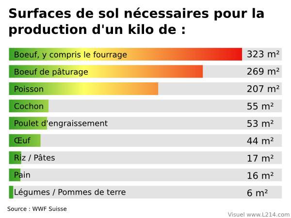 ; de plus, il émet 5 fois plus de gaz à effet de serre et consomme 6 fois plus d’azote que les œufs et la volaille...
