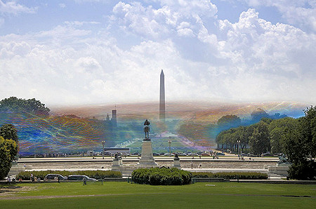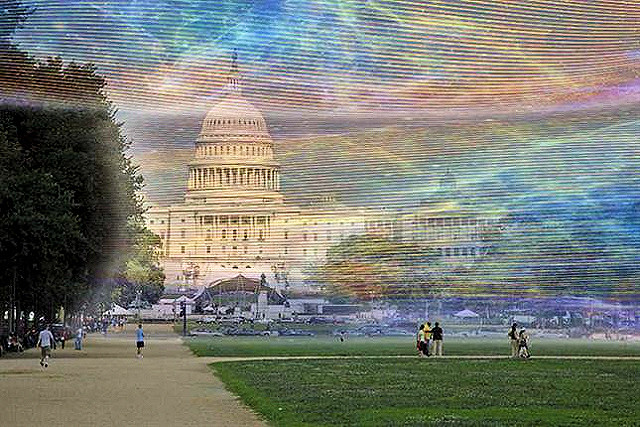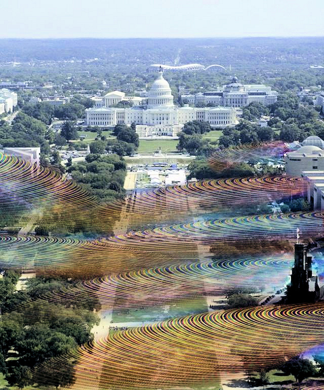 Nickolay Lamm s’est appuyé sur les travaux de l’astrobiologiste et ancien employée de la Nasa, Marilyn Browning Vogel, pour faire apparaître les ondes Wi-Fi sous la forme de vagues de couleurs différentes selon les émetteurs. Les routeurs Wi-Fi placés à différents points en hauteur peuvent émettre jusqu’à 30 mètres si aucun obstacle