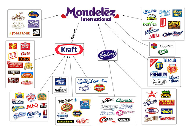 Une partie des produits que propose Mondelez International, plus néfastes les uns que les autres.