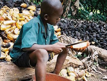 Plus de 150 000 enfants travailleraient à la récolte du cacao en Côte d'Ivoire, le premier producteur au monde. Dès l'âge de 6 ans, ils trient les fèves, ramassent les cabosses, transportent les paniers remplis de plusieurs kilos, usent de la machette pour extraire le cacao et diffusent les pesticides le long des cultures, et cela
